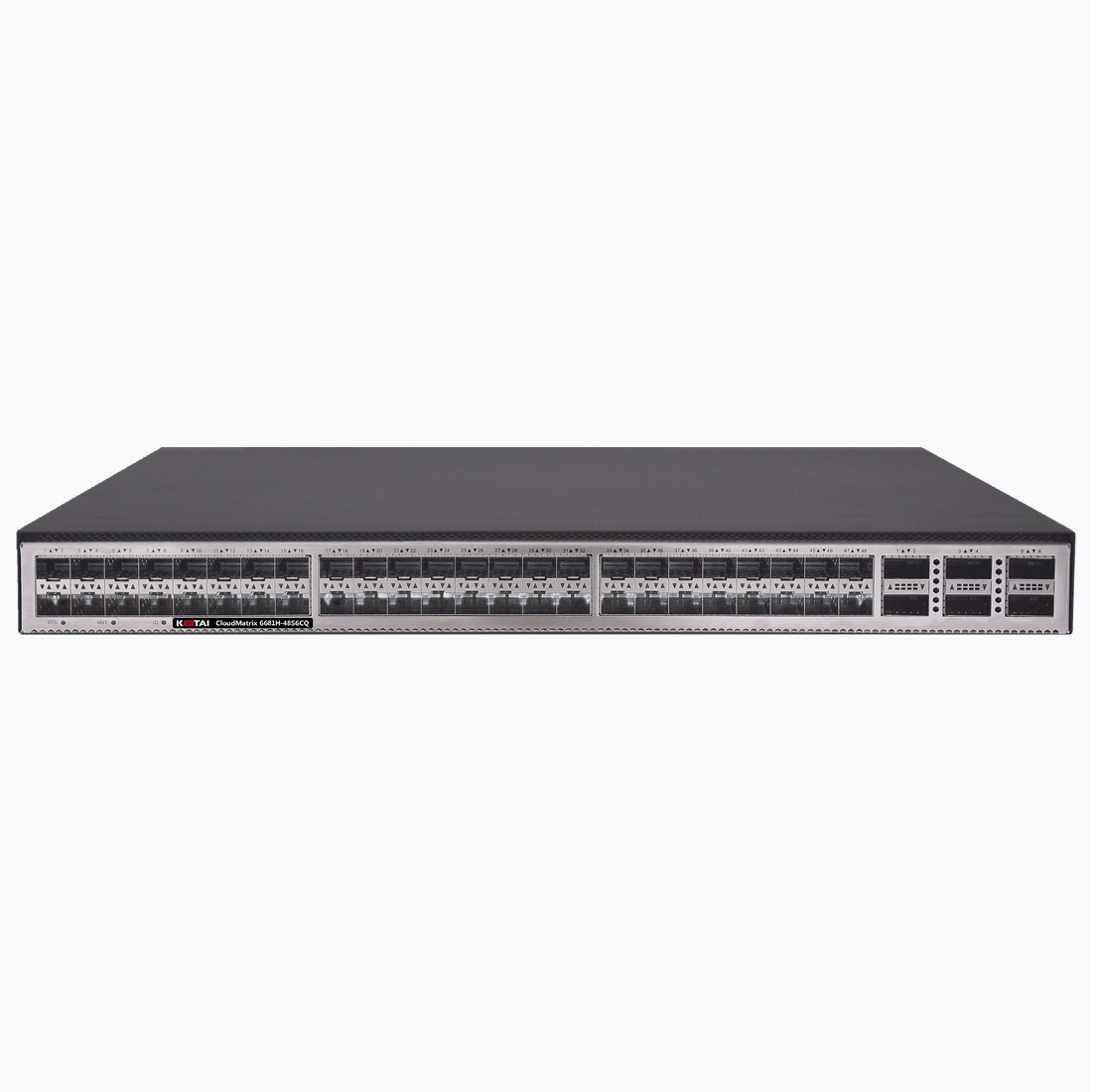 CloudMatrix 6681H-48S6CQ 交换机给予48个10GE SFP+接口,6个100GE QSFP28接口,或6个40GE QSFP+接口。