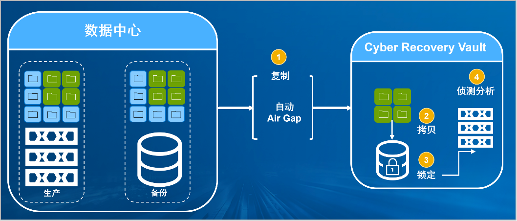 k8凯发防勒索病毒方案将生产中心备份数据复制到Vault区,复制后网络自动断开实现弹性隔离。Vault区的数据快速拷贝,并对拷贝版本加锁(在锁定期数据不允许删除和修改)。Vault沙箱内对拷贝版本进行扫描分析,验证数据是否完好。